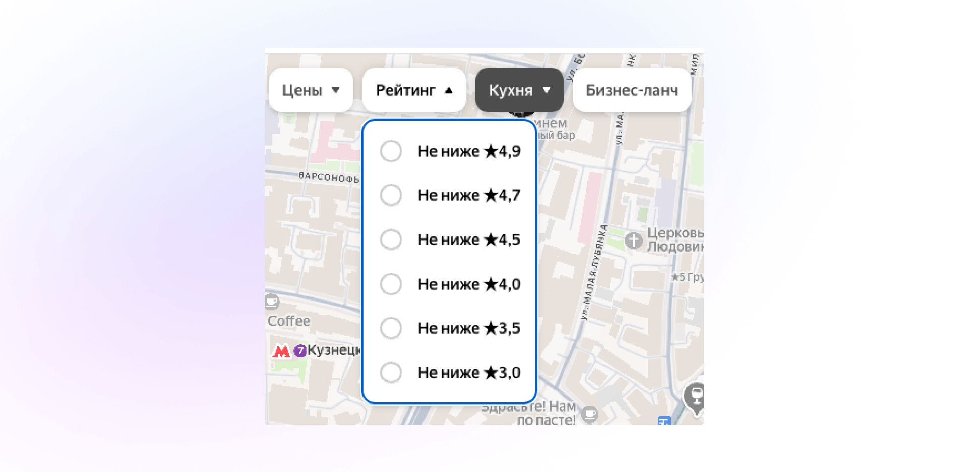 Вторая. Он помогает выделиться среди конкурентов в поисковой выдаче. В Яндекс.Картах есть фильтры по рейтингу, поэтому компании с низкими оценками не всегда вообще попадают в результаты поиска.