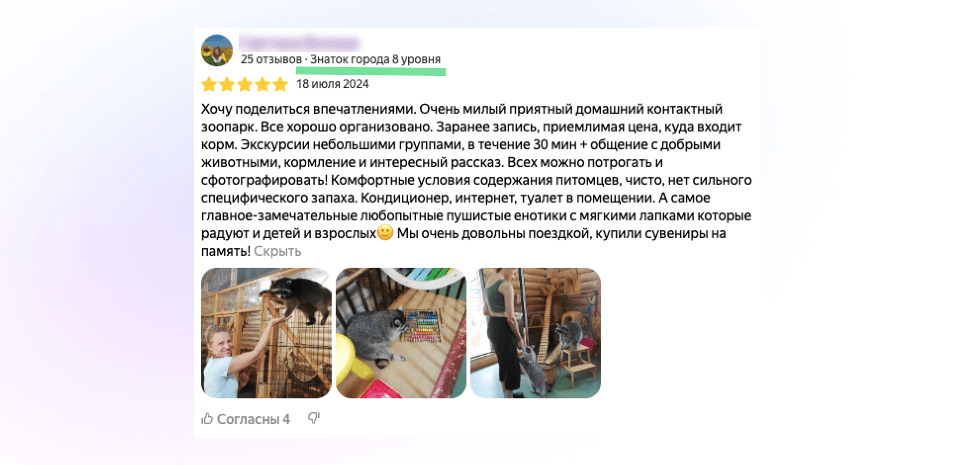 Это снижает строгость восприятия — человек мягче оценивает рейтинг компании и даже может не придавать большого значения отдельным не самым приятным отзывам.
