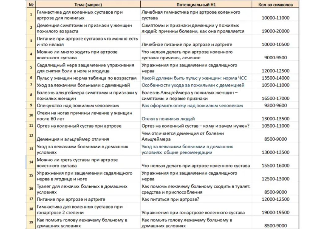 Пример контент плана для блога сайта-агрегатора медицинской тематики.