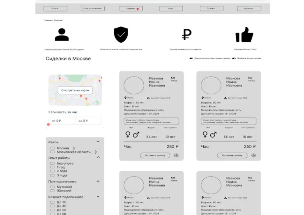 Мы провели работу и создали следующие прототипы страниц категории: