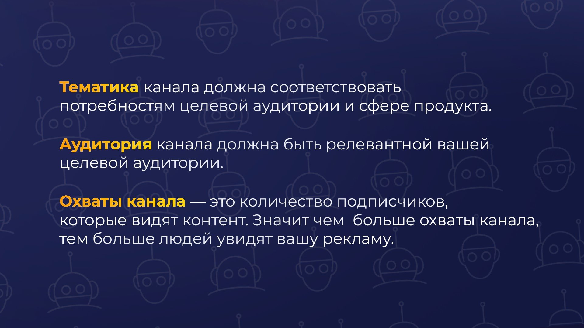 Если вы хотите запустить маленькую рекламную кампанию с одной целевой аудиторией на 1–2 канала, то вы можете справиться с этой задачей самостоятельно. В этом случае важно тщательно подойти к выбору каналов для рекламы. На что обращаем внимание: