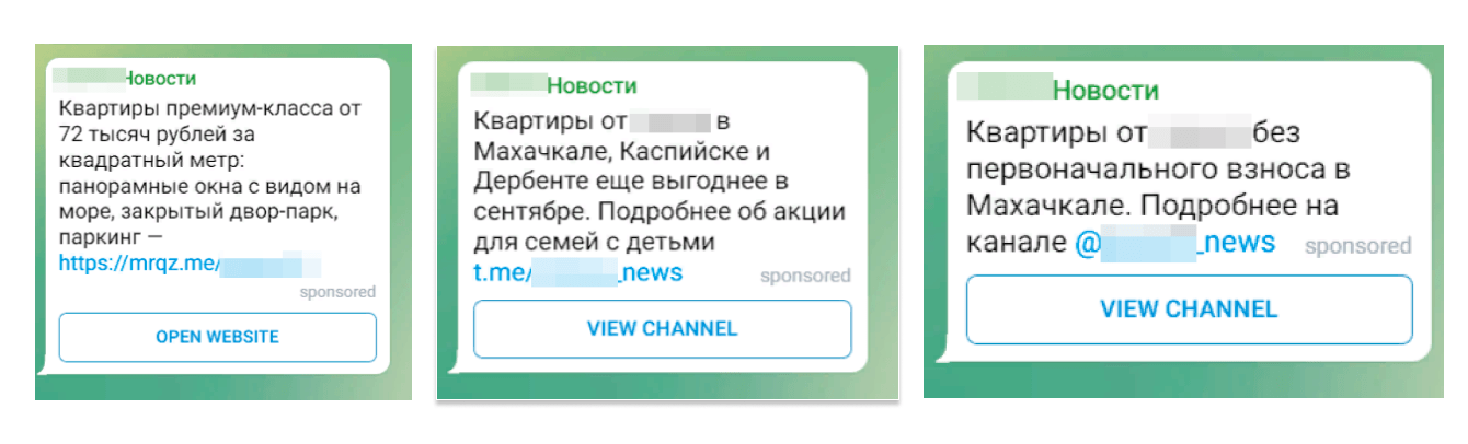 Из-за ограничений Telegram Аds по вставке внешних ссылок в РС приходилось вести на пост в канале застройщика, а значит увеличивалось количество шагов воронки:
