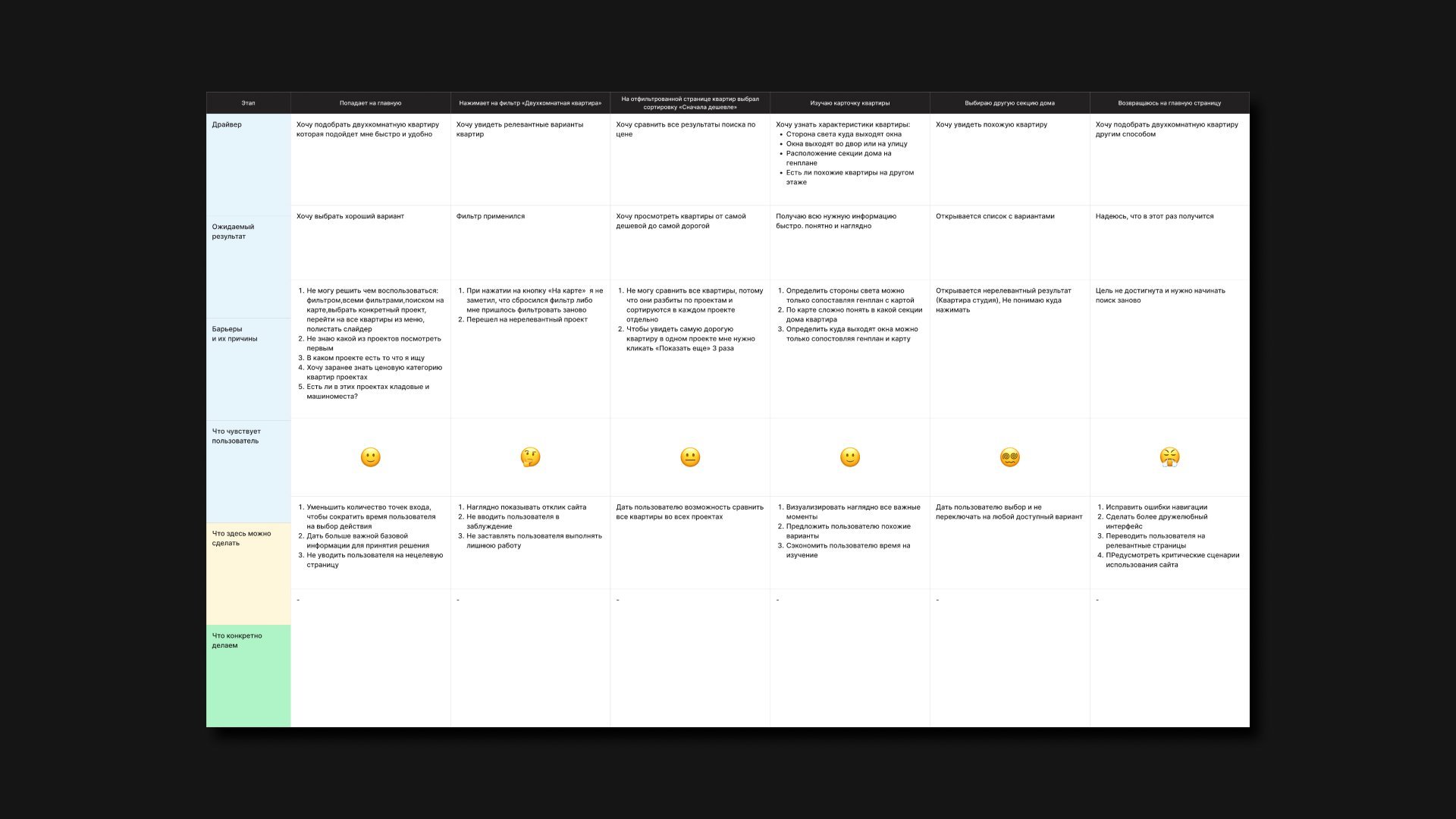 CJM или карта пути клиента позволяет визуализировать весь процесс взаимодействия пользователя с продуктом. Для составления такой карты определяются основные задачи, которые пользователь может решать в рамках проекта, каждая задача делится на промежуточные этапы. Затем для существующего продукта проводится тест, где исследователь описывает полученный на каждом этапе опыт в таблице. При создании продукта «с нуля» таблица может быть составлена на основе предположений. Задача CJM – учесть все необходимые на каждом этапе возможности, выявить точки, где интерфейс можно улучшить.