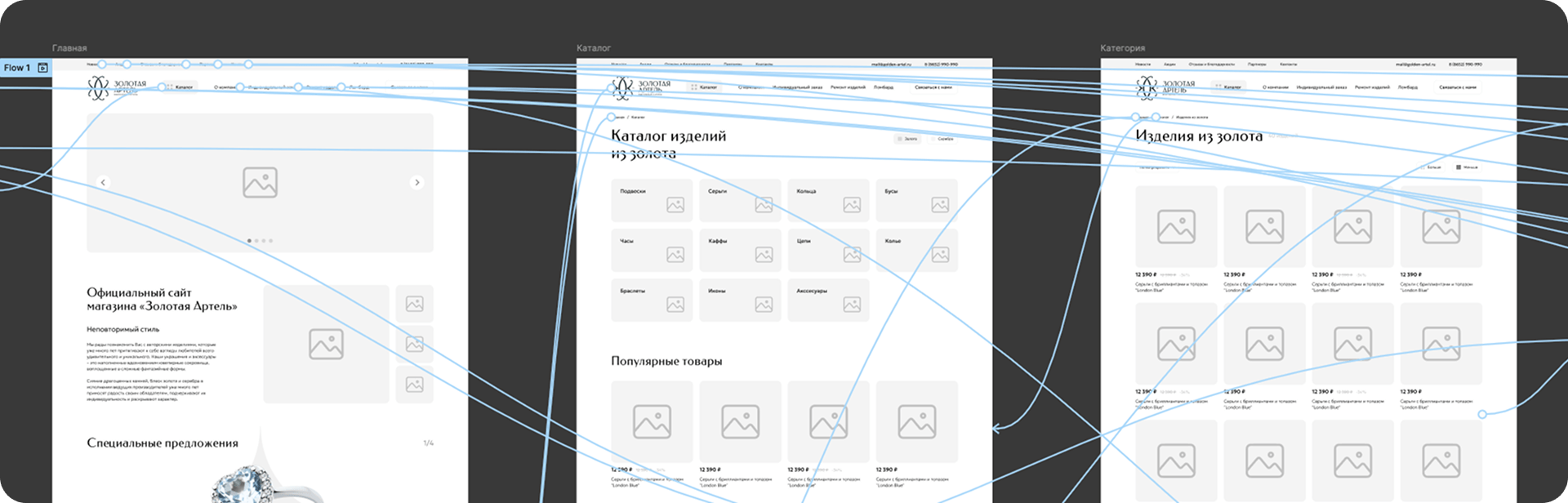 Это схематичная версия будущего сайта, где наглядно показано расположение всех ключевых элементов: разделов, кнопок, форм, блоков контента и навигации. На этапе прототипирования закладывается логика взаимодействия пользователя с сайтом.