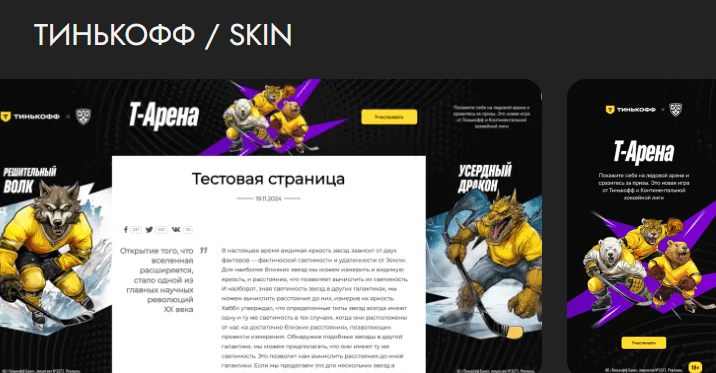 Пример: фон‑брендинг сайта, центральный блок, анимация, кнопки и интерактивные зоны.
