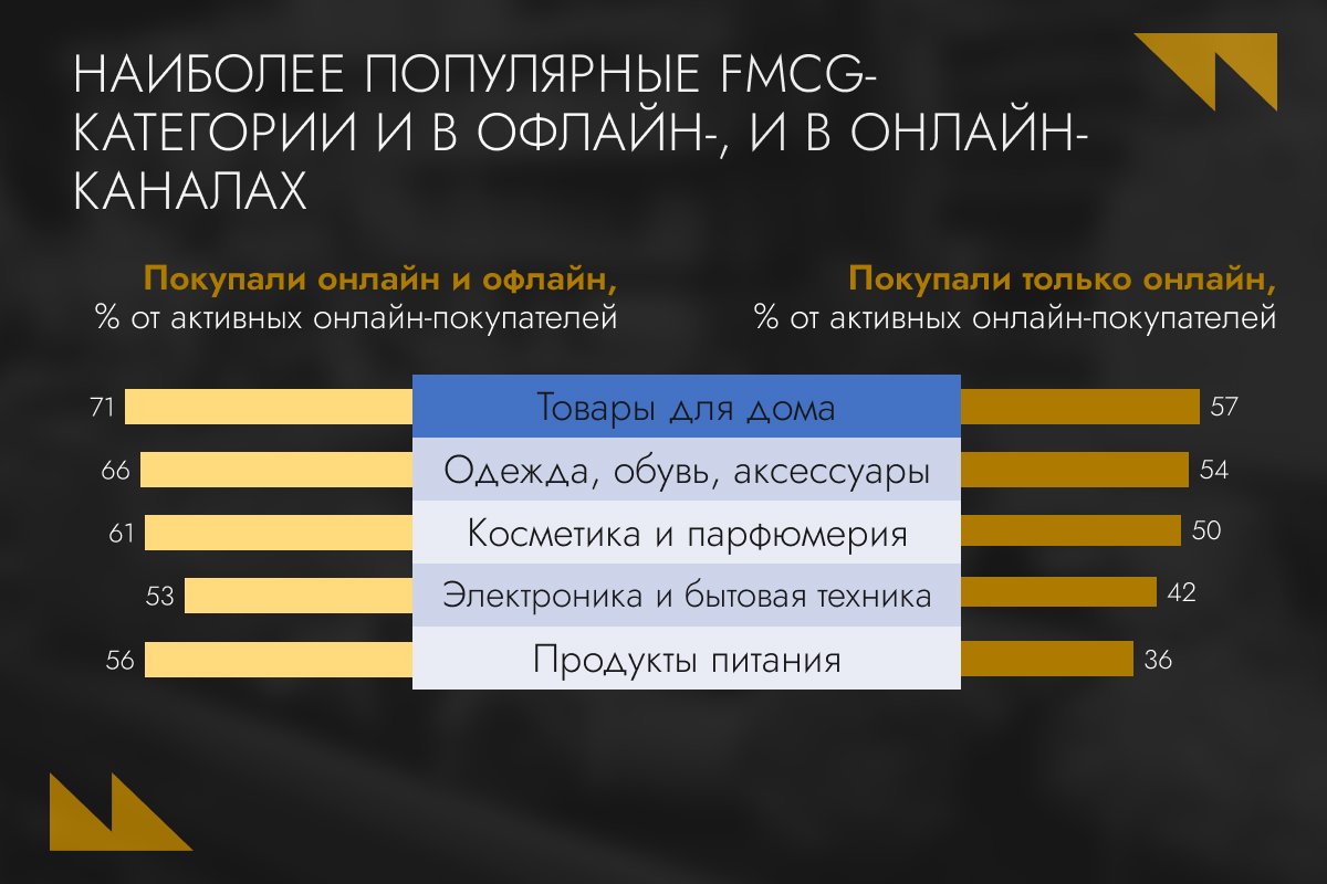 При этом продажи непродовольственных товаров, которые нет нужды посмотреть, потрогать, понюхать, плавно переходят в e-com. Например, офлайн-продажи подгузников в 2024 году упали на 20%.