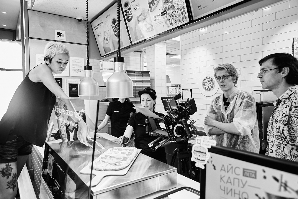 Алина — На самом деле, меня поразило, насколько открытые люди были в Додо-офисе, и как они принимают новичков. Поэтому буквально в первый же день я почувствовала себя частью команды. Мне кажется, с Леонидом мы сработались сразу: он креативный, и мы идеально дополняли друг друга. Женя был одним из трех на тот момент дизайнеров. Есть фотки, где мы для разных промокампаний участвовали в фотосессиях просто в качестве моделей. Наши первые проекты рождались в условиях стартапа, где «все делают всё».