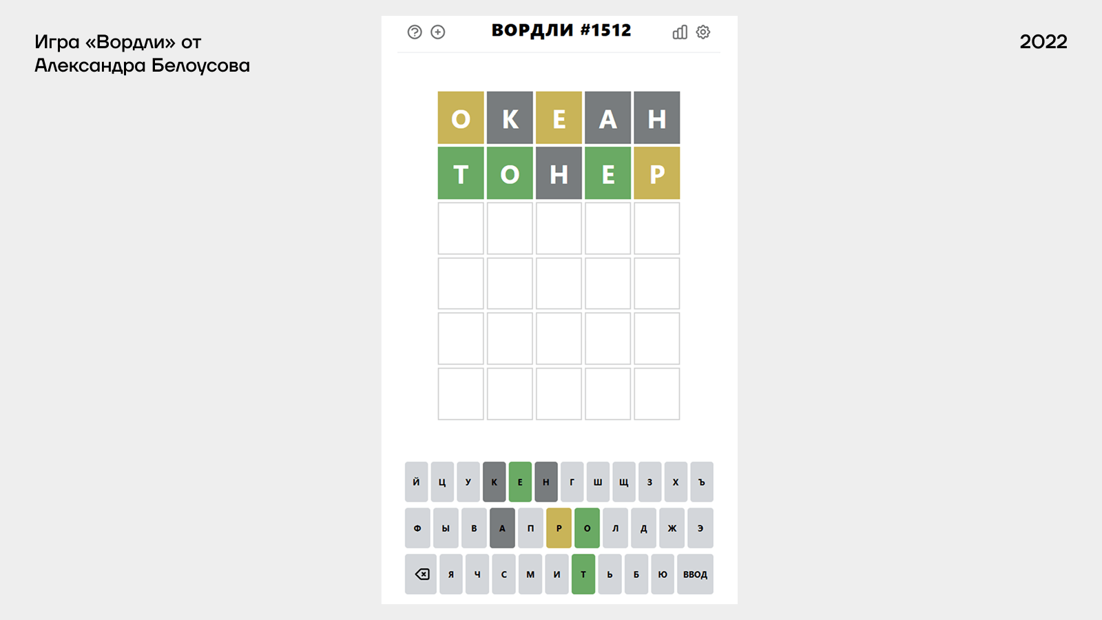 Секрет успеха кроется в простоте правил и ограниченном доступе. Нужно угадать всего одно слово в день, что делает игру интуитивно понятной, доступной для широкой аудитории и формирует привычку возвращаться к ней регулярно.