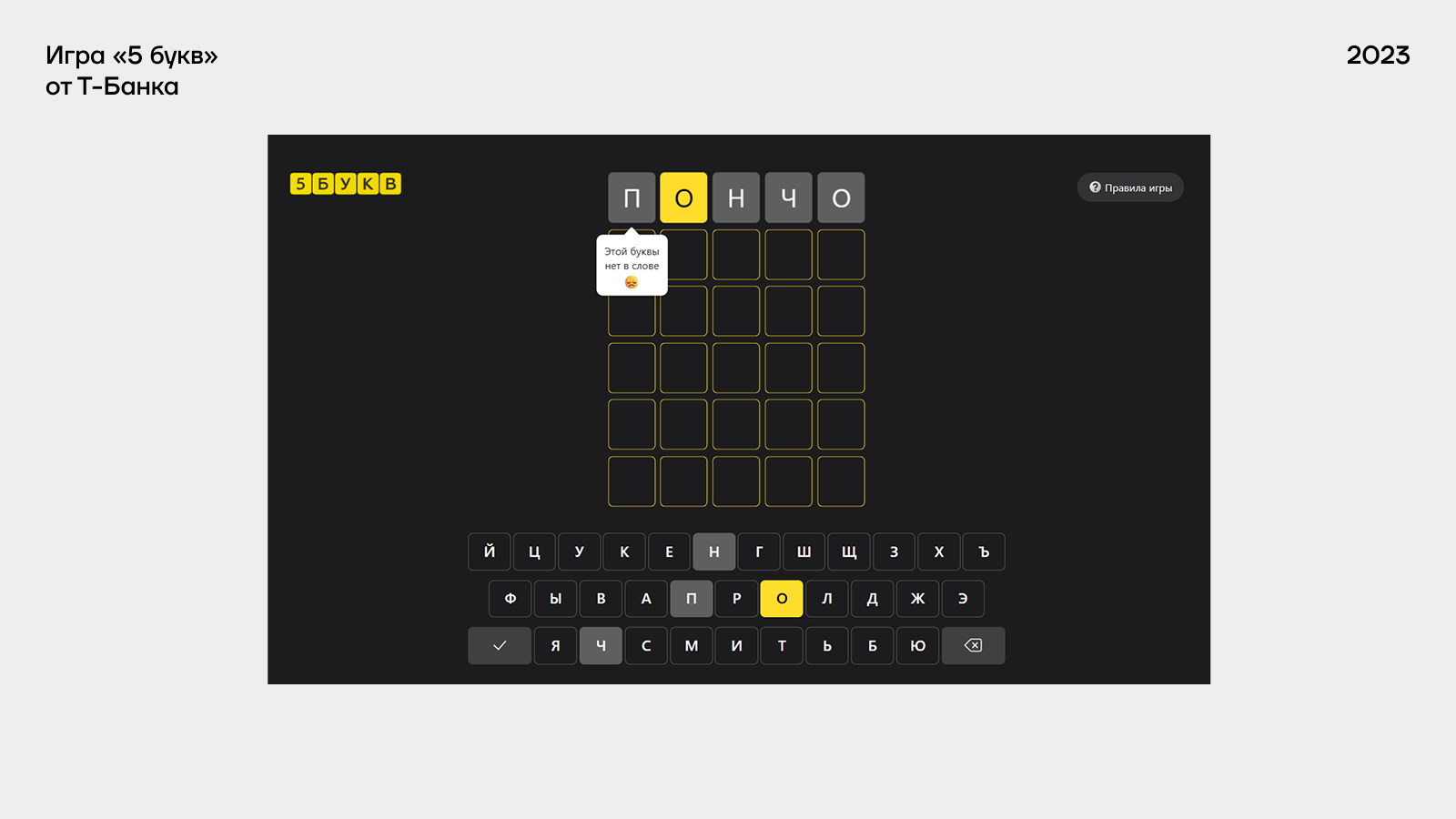Конечно, успех Wordle не мог остаться незамеченным среди маркетологов, и бренды начали адаптировать механику для вовлечения аудитории. На российском рынке наиболее яркий пример — игра «5 букв» от Т-Банка. В мобильном приложении банка пользователям предлагают ежедневно угадывать слово из пяти букв. На это, также как в оригинальной игре, даётся шесть попыток. За пять отгаданных слов подряд пользователи получают призы в виде скидок, повышенного кешбэка и других призов.