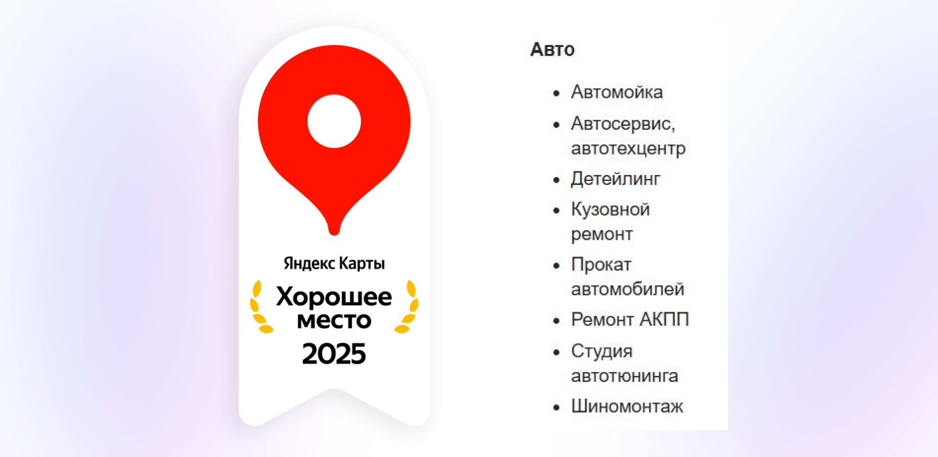 Наверняка вы видели на витринах и карточках компаний яркую наклейку «Хорошее место». Это не просто декор — это знак доверия от Яндекса. В тематике авто эту награду могут получить практически все: автосервисы, шиномонтажи, студии автотюнинга и другие.