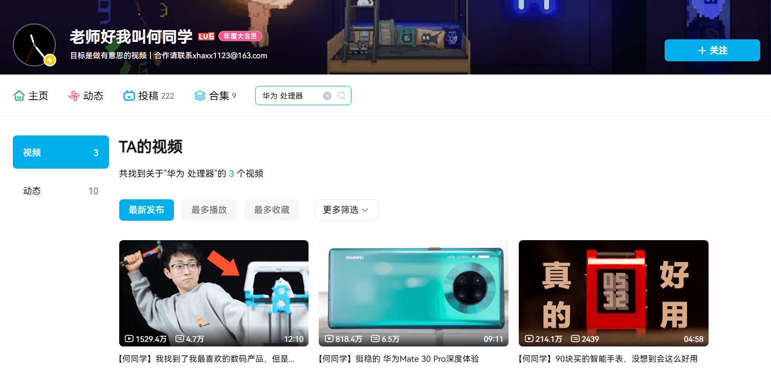 Коллаборация Huawei с блогером @老师好我叫何同学 (Bilibili) — видео про новые процессоры собрало 20M+ просмотров.