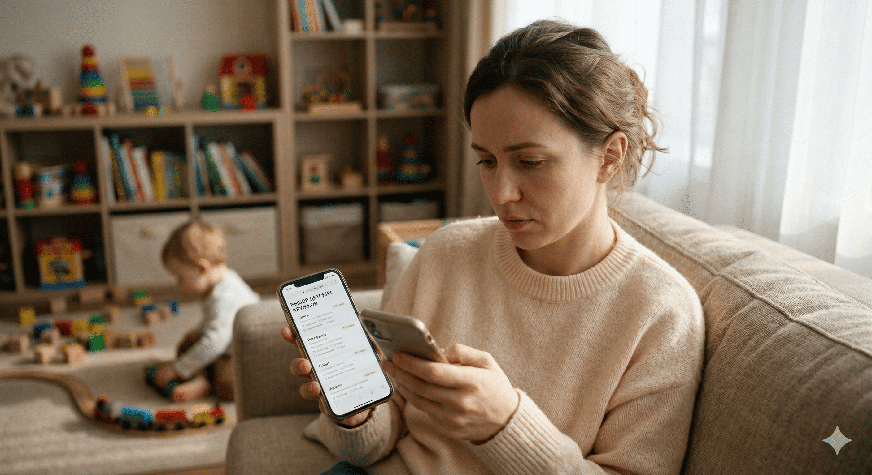 · Ключевые боли: Ребенок постоянно сидит в гаджетах, плохо говорит, не умеет общаться со сверстниками. Самой маме катастрофически не хватает времени на себя, она выгорела.