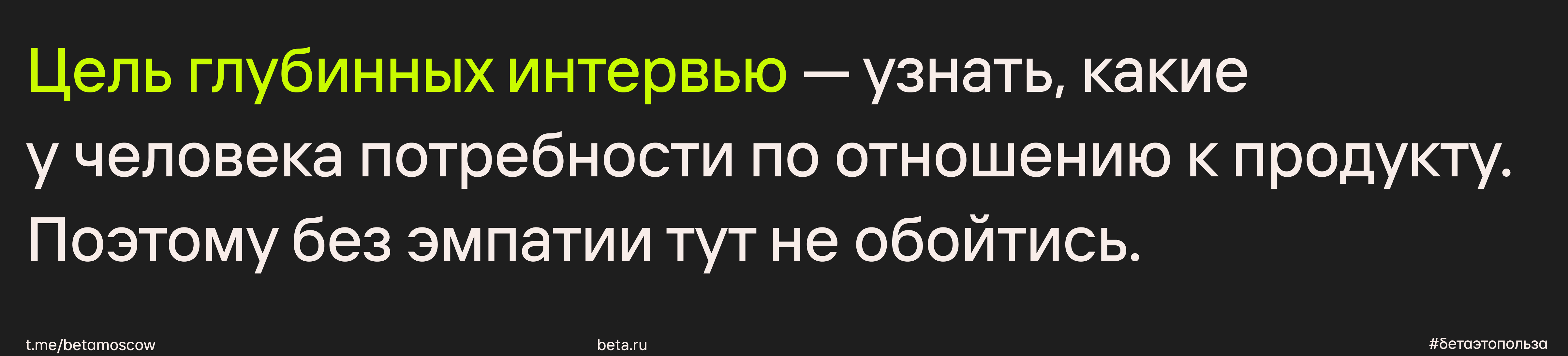 Особенность глубинных интервью в том, что не нужно опрашивать сотню пользователей — достаточно десяти, но при этом разговоры должны быть детальными.