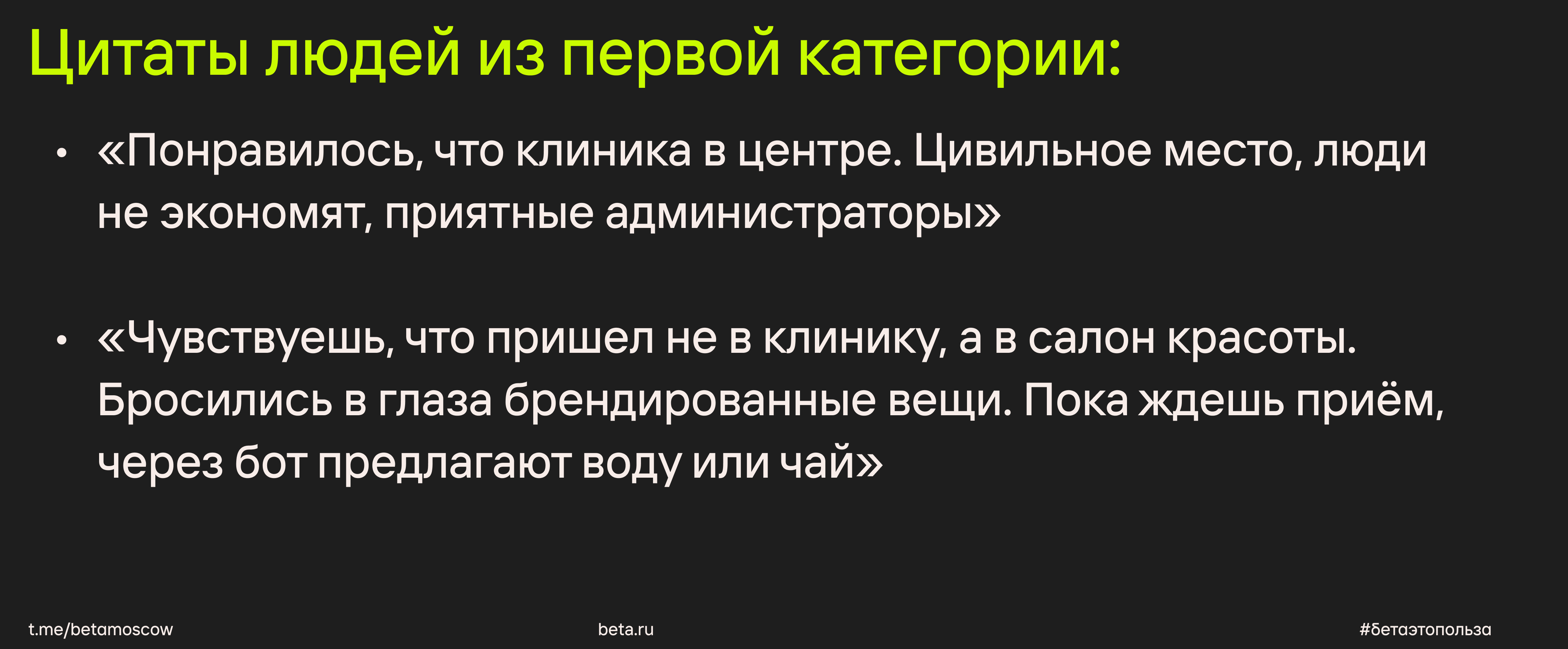 В ходе исследования мы заметили, что клиенты клиники — люди с определёнными чертами характера. Выделили две категории: