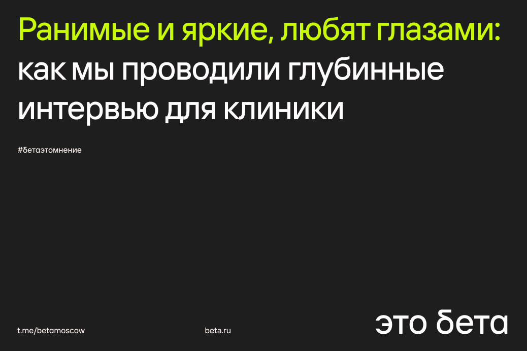 Привет, это бета. Любим, когда клиенты приходят со словами: «Блин, очень круто дизайните. Хотим от вас сайт». А мы в ответ идём копать информацию о людях, для которых заказчик делает бизнес.