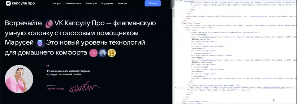 Это уже четвёртый выпуск, где мы разбираем сайты с интересными анимациями/фичами/задумками, которые нас зацепили. Смотрим на него как пользователи, а потом — как разработчики. Оцениваем метрики сайта и разбираемся, как его улучшить. На этот раз, мы взяли сайт с умными колонками от ВК.