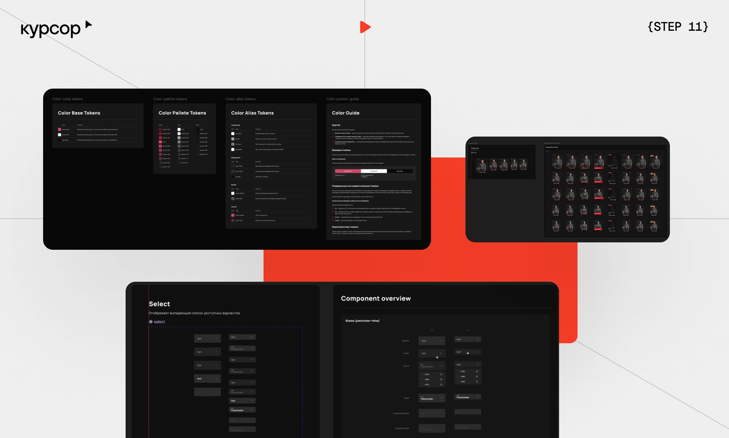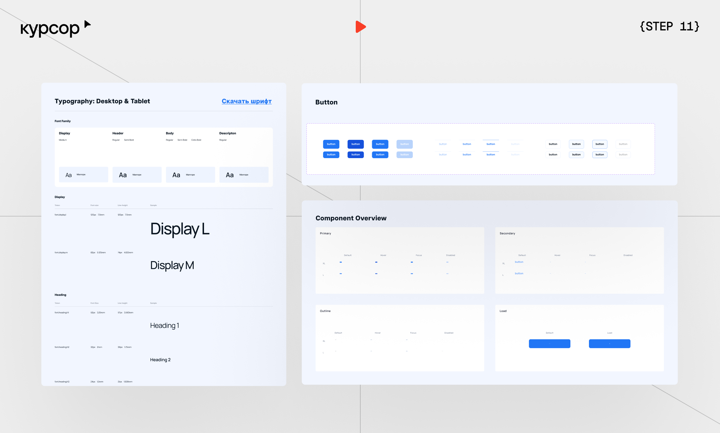Пилим UI-кит — отдельный файл со всеми строительными блоками дизайна. Туда входят цвета, шрифты, состояния кнопок, описанные анимации и полноценный макет.