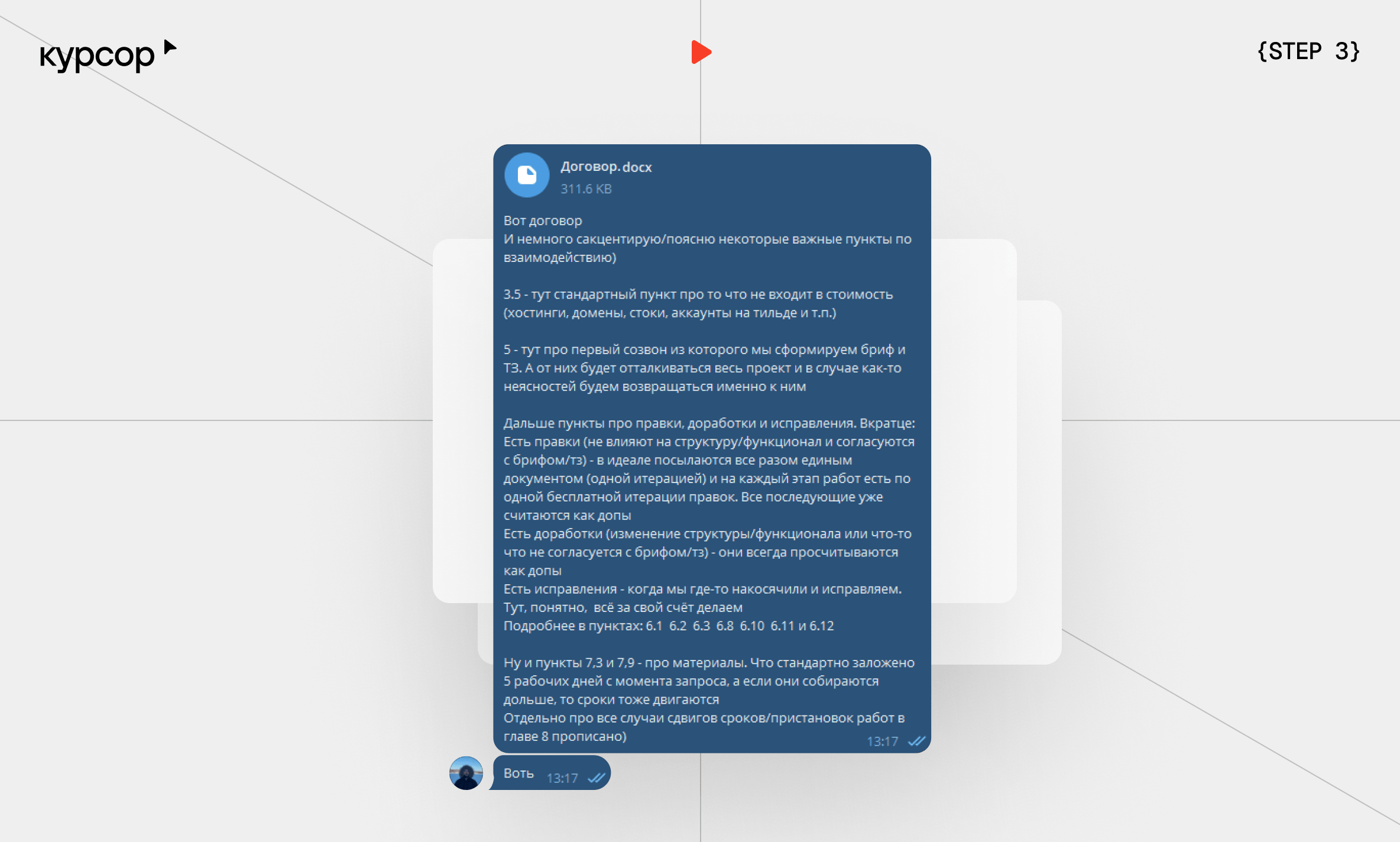 💚 Грин флаг: если агентство не просто молча кидает вам файл договора, а сопровождает его пояснительным сообщением. Например, подсказывает, на какие пункты нужно обратить внимание.