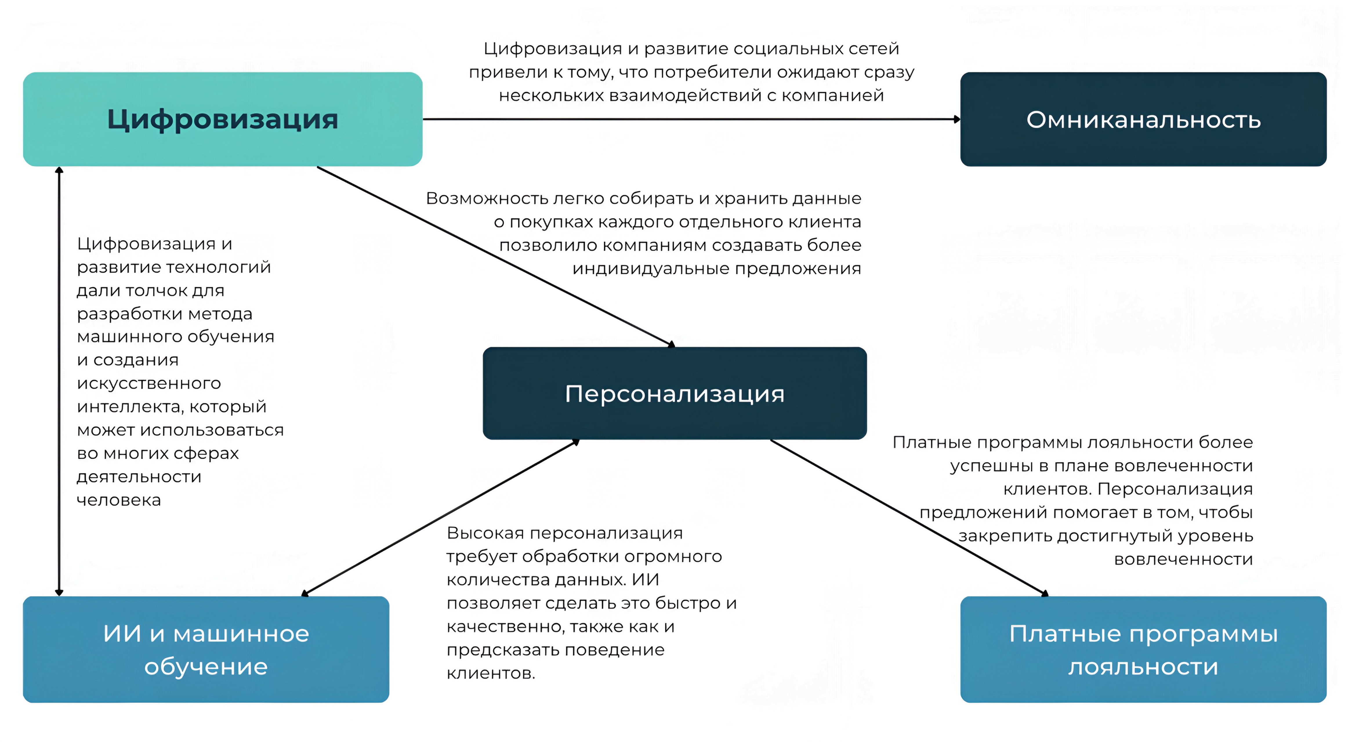 Цифровизация - не новый тренд развития программ лояльности. С широким распространением смартфонов и мобильных технологий всё больше компаний стали переводит свои программы лояльности в цифровую среду. Это позволяет клиентам легко отслеживать баллы и использовать вознаграждения прямо со своих устройств. Компании же могут собирать и хранить данные о покупках каждого отдельного клиента. Анализ этих данных всей базы клиентов помогает компаниям подготовить более персонализированные маркетинговые мероприятия.
