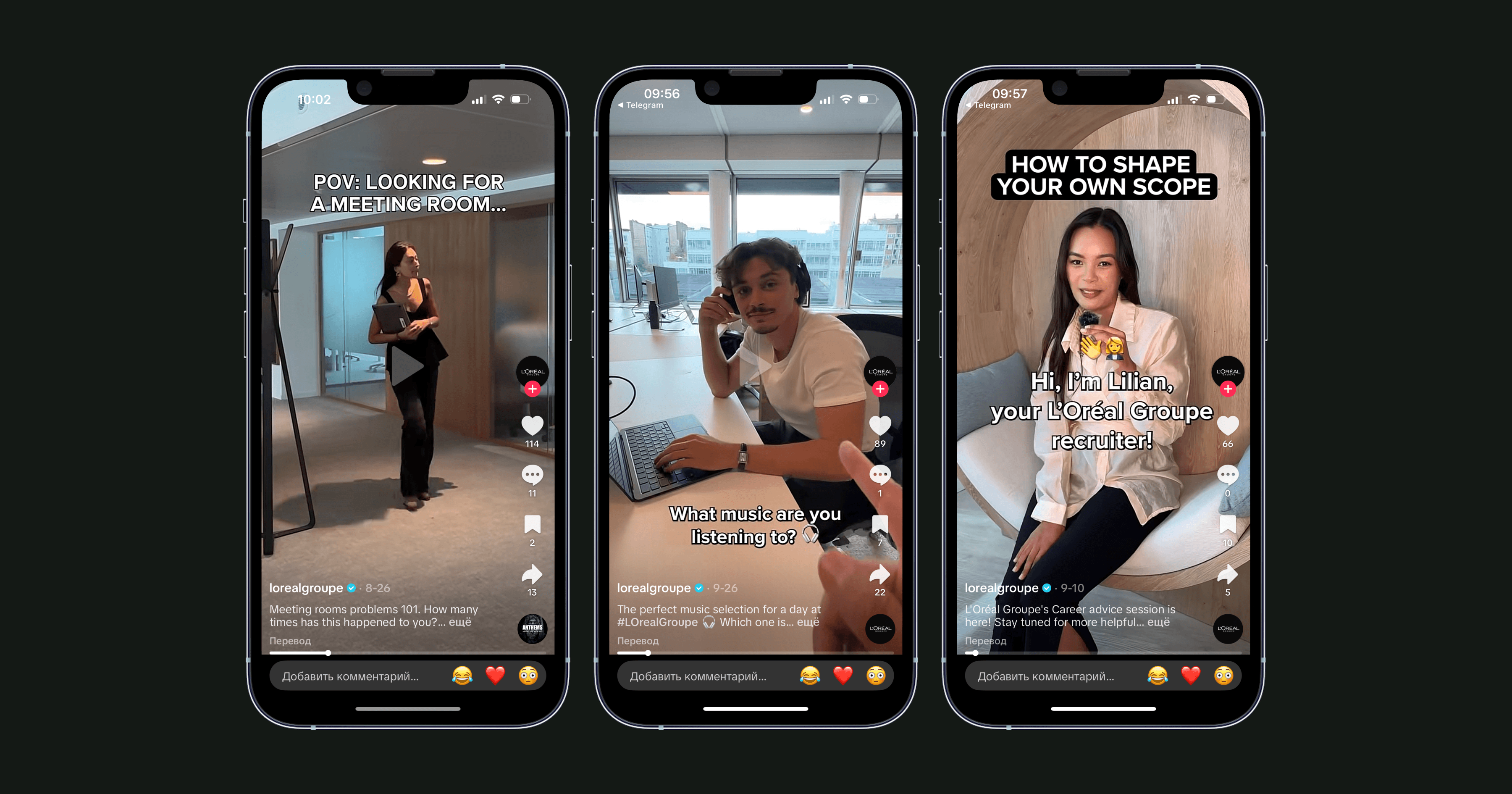 Работодатель делает ставку на TikTok и через видеоконтент транслирует ценности: инклюзивность, этику, устойчивость. L’Oréal располагает кандидатов к себе, показывая первый день сотрудника на работе, короткие интервью о процессе отбора, советы для соискателей, истории карьерного роста в разных направлениях компании.