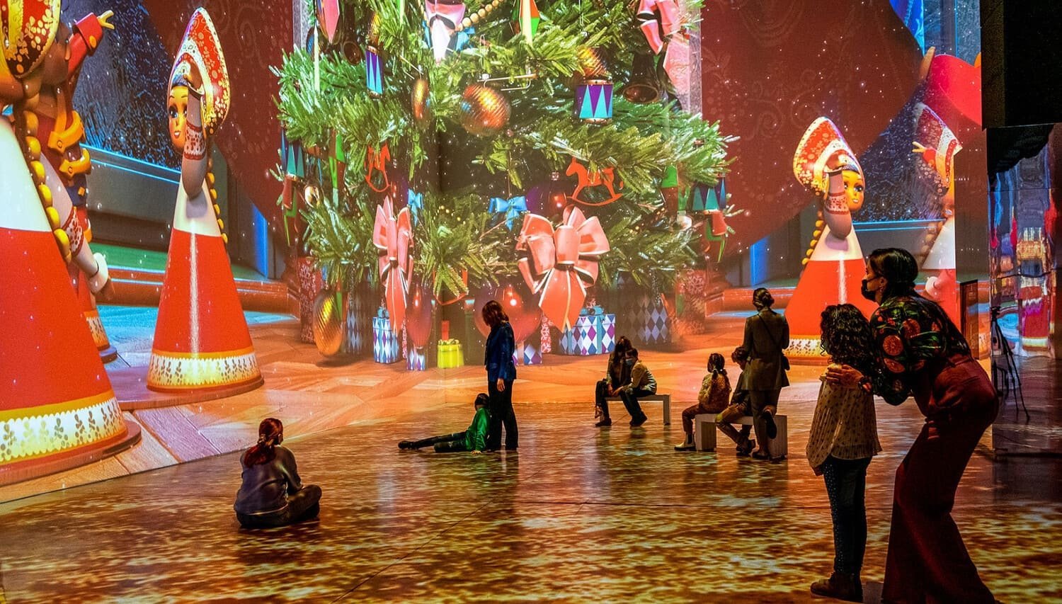 Абсолютное погружение в новогоднюю сказку создают иммерсивные технологии, которые используются в различных новогодних шоу, экскурсиях, спектаклях, которые проводят музеи, выставочные комплексы и другие организации. Благодаря особому аудиовизуальному сопровождению и организации сценического пространства гости мероприятия попадают в историю или в игру, зритель становится участником. Он взаимодействует как с сюжетом, так и с объектами, в том числе мультимедийными.