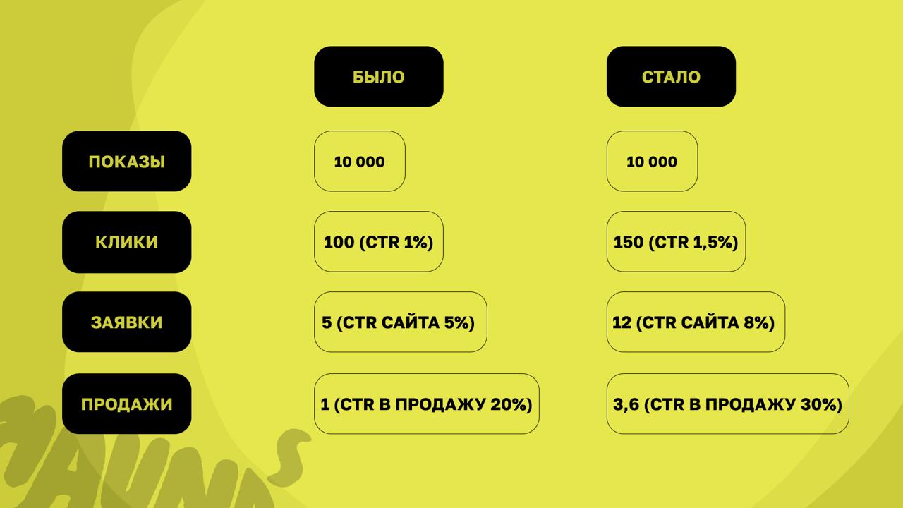 Мы подняли CTR на 0,5%, сайт — на 3%, продажи — на 10% с помощью той схемы, о которой писали выше. Итого: 3,6 продажи вместо одной. И опять это стоило партнеру ноль рублей.