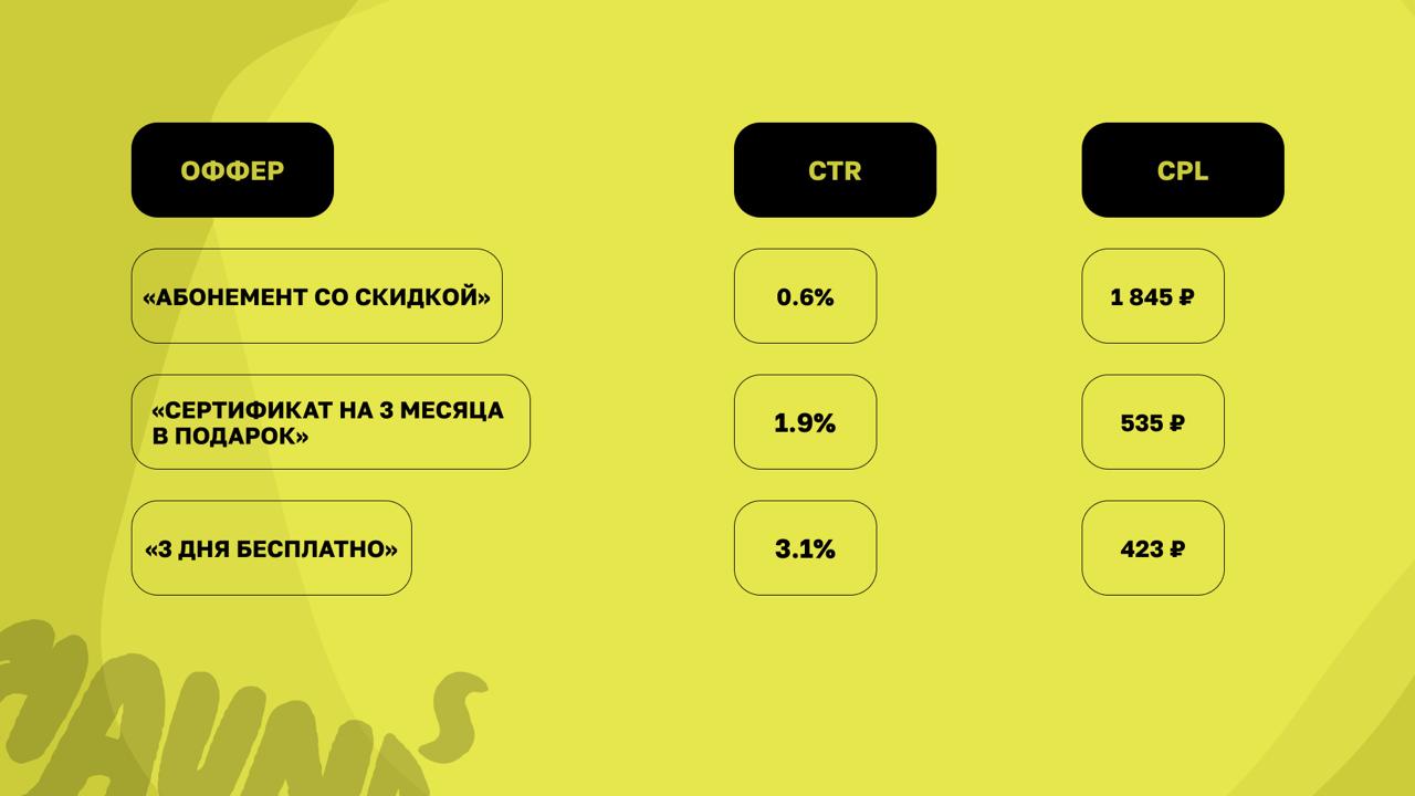 Кейс: Вот результаты теста 3 вариантов оффера на одну аудиторию, выводы можете сделать сами.
