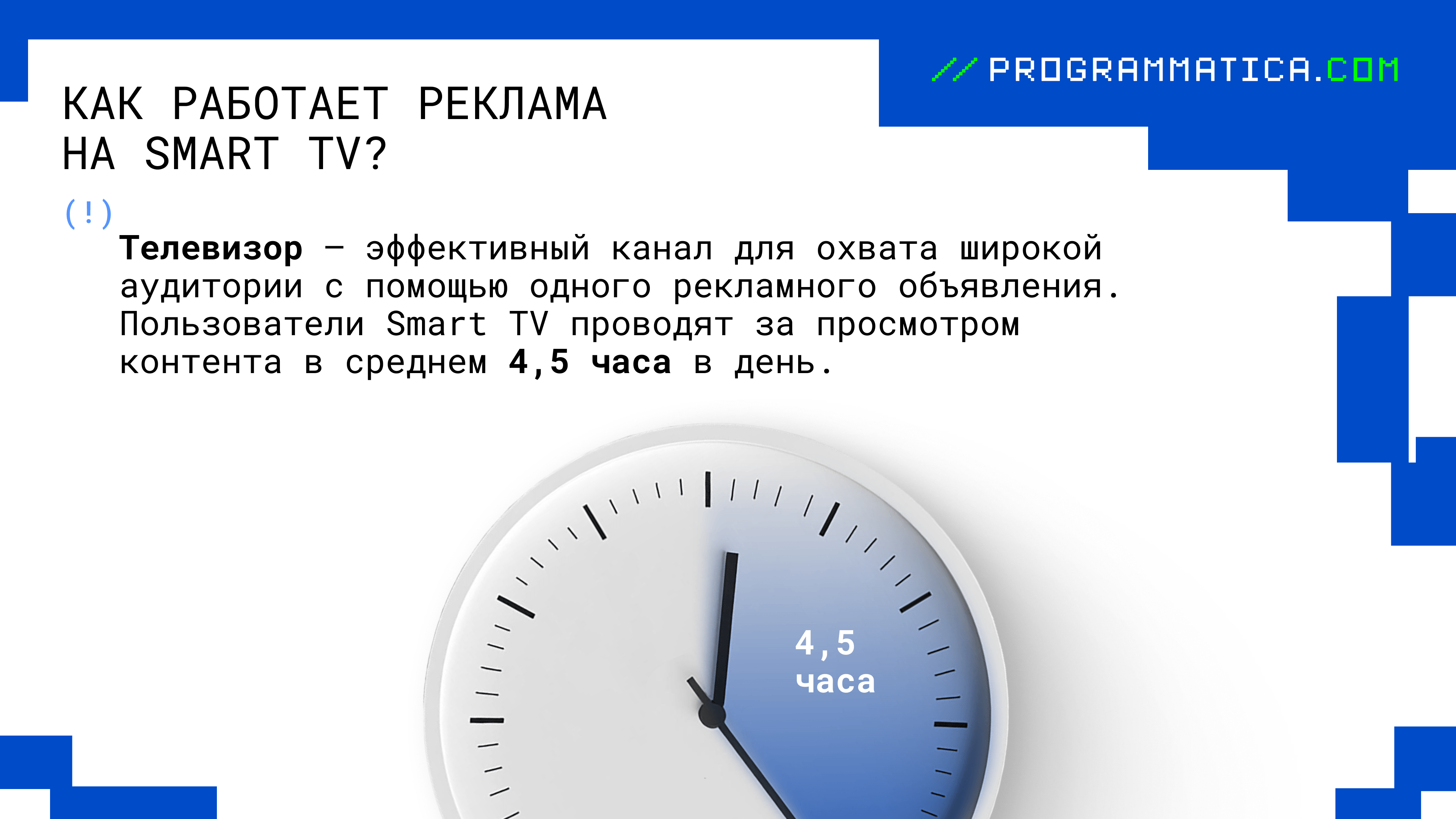 Programmatica.com раскроет, почему реклама в Smart TV — одно из самых перспективных направлений современного маркетинга. Чтобы прийти к такому смелому выводу, пройдемся по преимуществам для рекламодателей и пользователей, современным форматам размещения креативов, а также механизмам таргетирования и аналитики.