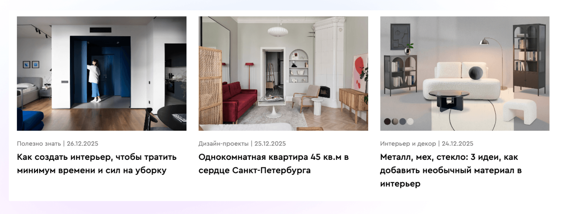 Начать стоит с контента. Самый очевидный и при этом часто недооцененный инструмент — корпоративный блог. В нем можно публиковать кейсы, обзоры, гайды, разборы и полезные статьи. Например, если у вас магазин мебели, логично делать материалы о том, как выбрать диван, обустроить квартиру или сделать подборку компактной мебели для небольшой квартиры.
