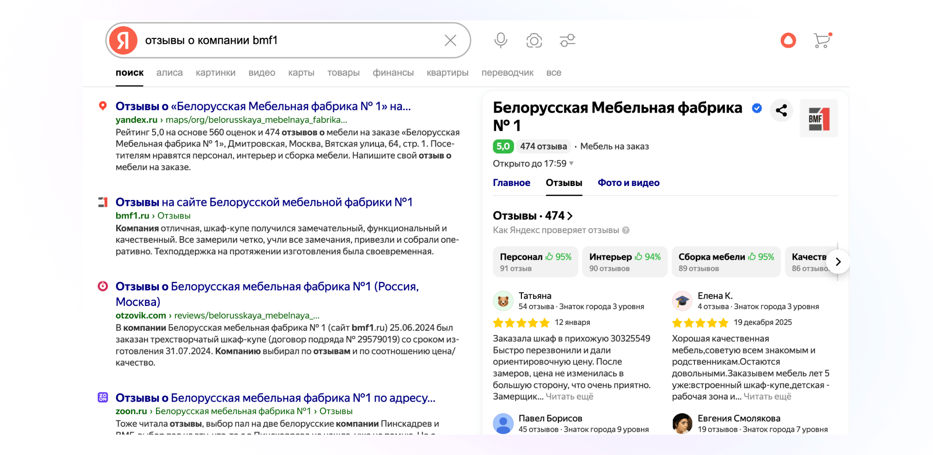 В поиске он увидит все подряд: отзывы на 2GIS или Яндекс Картах, страницу на отзовике, статьи на непонятных сайтах, чей-то гневный пост на форуме. А потом, возможно, только ваш официальный сайт. И если в этом списке мелькают слова «обман», «развод», «не советую» — утверждать, что клиент дойдет до формы заявки, уже не приходится. Он просто уйдет к конкуренту.