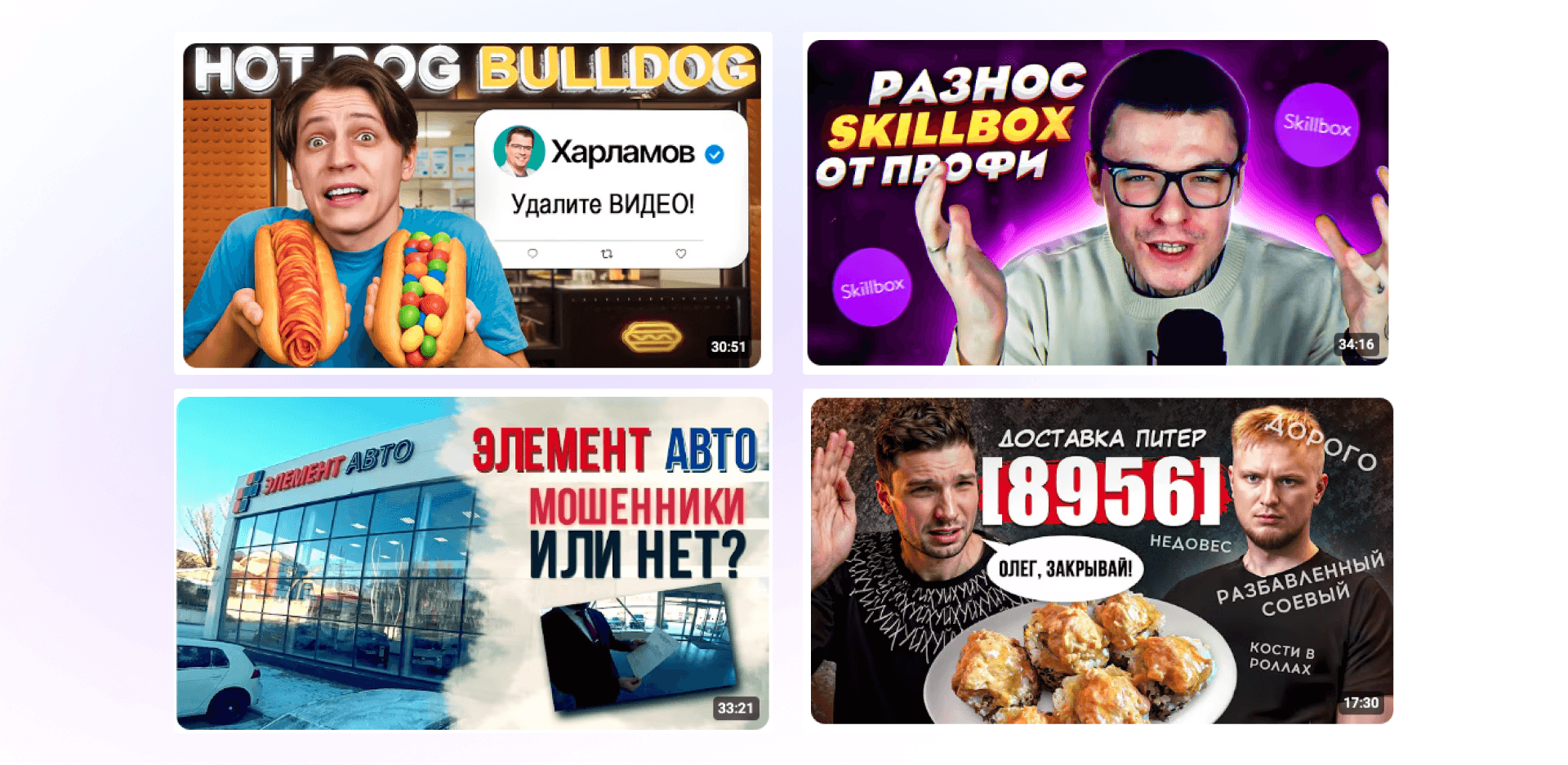 Еще один сильный инструмент — видео. Поисковые системы хорошо ранжируют видеоконтент, поэтому ролики на YouTube, Дзен или Rutube могут занимать позиции в поиске. В результате человек, который ищет отзывы о компании, вместо очередного комментария на форуме видит видеоразбор или ролик с реальным клиентом.