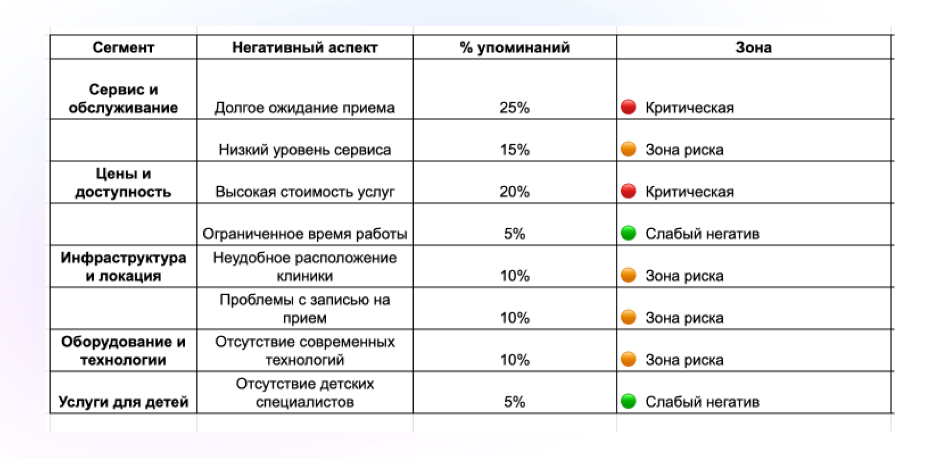 При проведении аудита репутации мы всегда составляем карту негативных триггеров. Такой формат помогает быстро определить слабые места в сервисе или даже самом продукте.