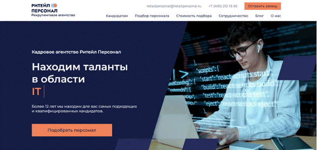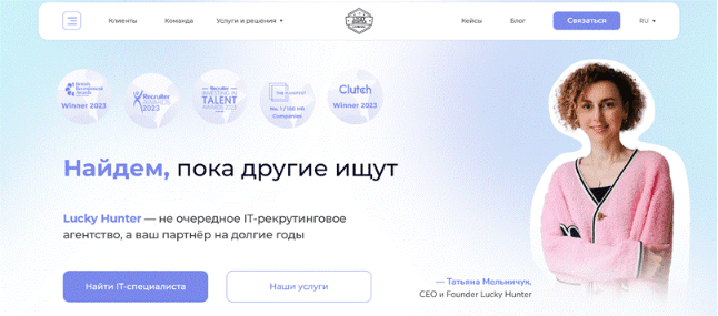 Это агентство выгодно отличается благодаря уникальному подходу: технические интервью проводят внешние эксперты, оцениваются soft-skills, применяется гибкая модель найма. Особенно хорошо агентство справляется с подбором IT-специалистов под узкие бизнес-задачи.