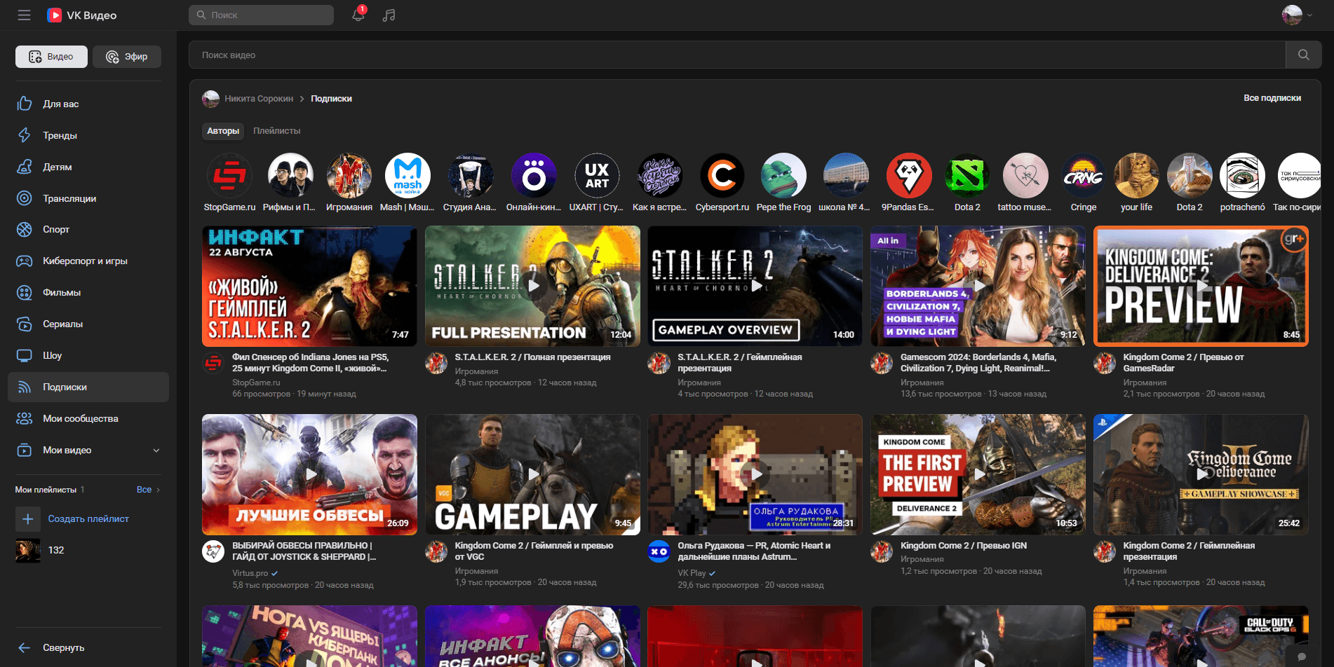 «Трансляции», «Спорт» и «киберспорт и игры» выглядят идентично. Единственное ключевое отличие, почему-то последний раздел обделили и внутренней фильтрации (которая под поиском) здесь нет. Хотя, как мне кажется, можно было бы вывести банальное «популярное» и несколько жанров/тематик.