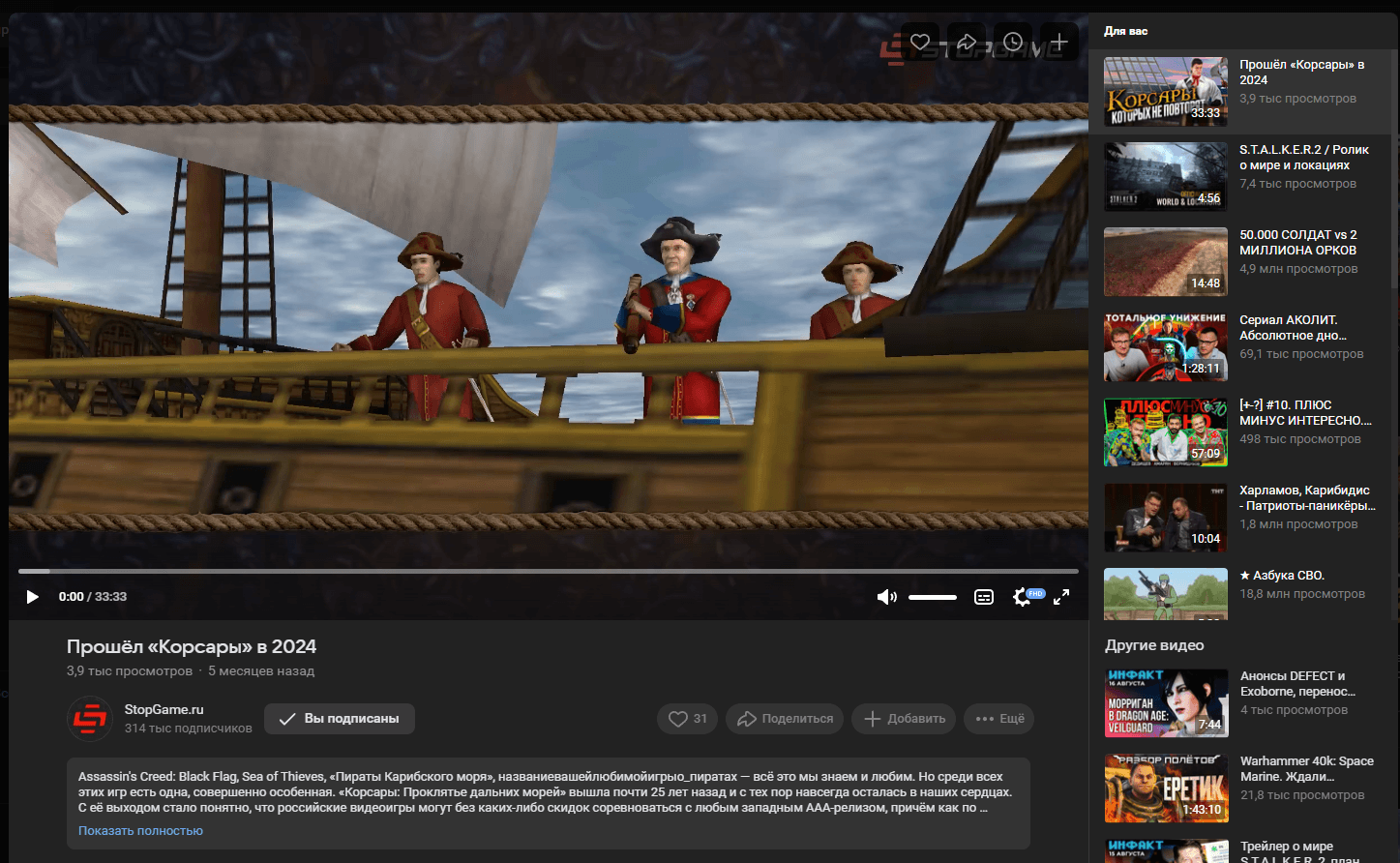 Переходим дальше — в правой части вы могли заметить рекомендательную систему. Она делится на две части — «Для вас» и «Другие видео».