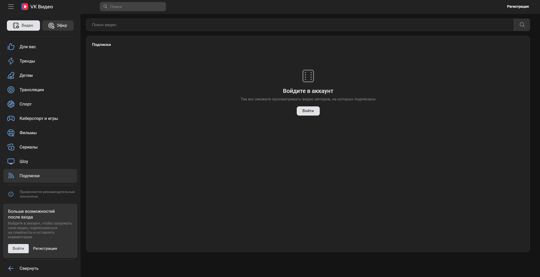 Это либо подкасты с артистами, либо клипы, либо концерты. А что самое главное, в отличие от Rutube, нам в эти категории разрешают переходить без авторизации.