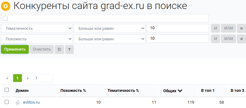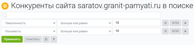 Если список сайтов получается большим, вы можете увеличить показатели тематичности и похожести. Либо наоборот уменьшить, если конкурентов мало.