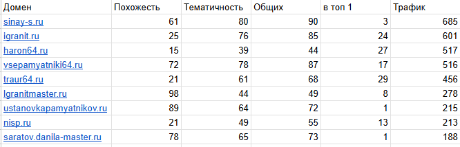 Сайты конкурентов продвигаются по тем же запросам, что и мы. Можем отсортировать их по трафику.
