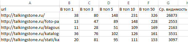 Оставляем в таблице только столбцы URL, запросы в топ-10 и среднюю видимость по Яндексу и Google.