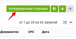 Поэтому иногда можем не собирать семантику из Яндекс Вордстат, а взять статью конкурента и посмотреть, по каким запросам она показывается. Также можно посмотреть конкурирующие страницы. Для этого нужно нажать на одноименную кнопку справа от отчёта.
