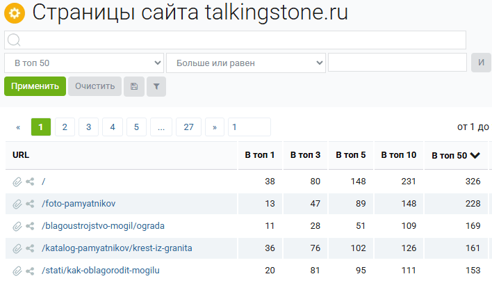 Нам будут показаны страницы, на которых есть хотя бы один запрос в топ-50.