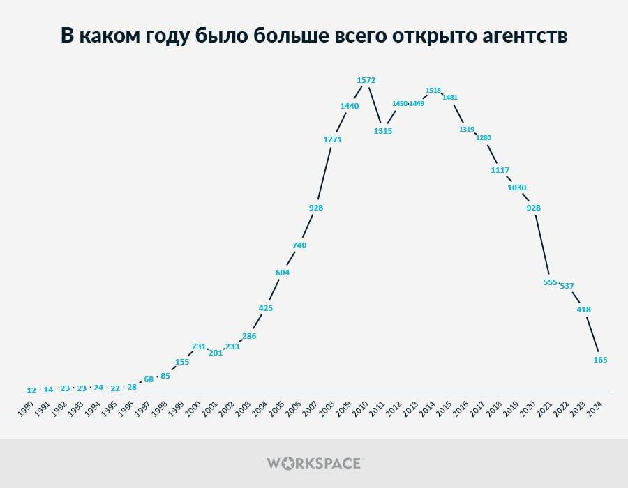 2010 год — «золотой период», на который пришлось наибольшее количество оснований агентств;