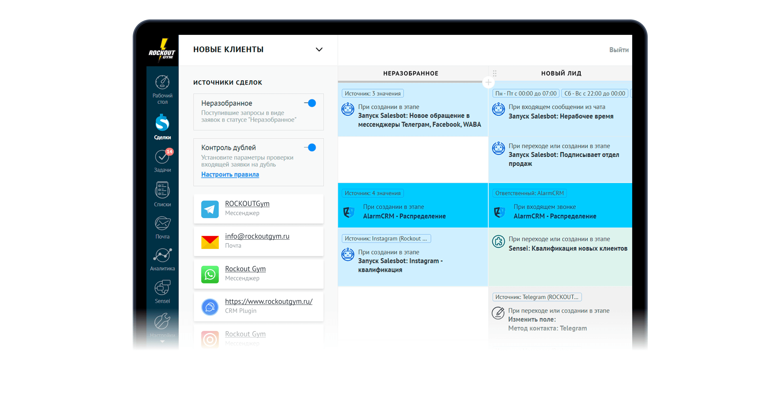 Решение оказалось в грамотной автоматизации — Rockout Gym внедрил amoCRM + чат-боты и теперь работает с клиентами эффективно и комфортно.