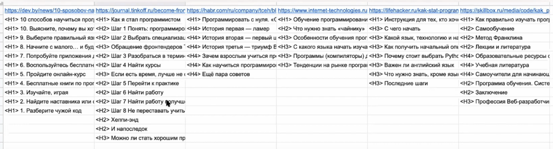 Теперь у нас есть список того, что уже сейчас хорошо оценивается поисковиками. С высокой долей вероятности, если мы напишем что-то подобное, наша статья также окажется в десятке.