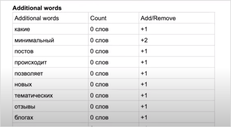 Из этого можно сделать вывод: чем больше таких слов будет в тексте, тем больше шансов, что он окажется в топе.