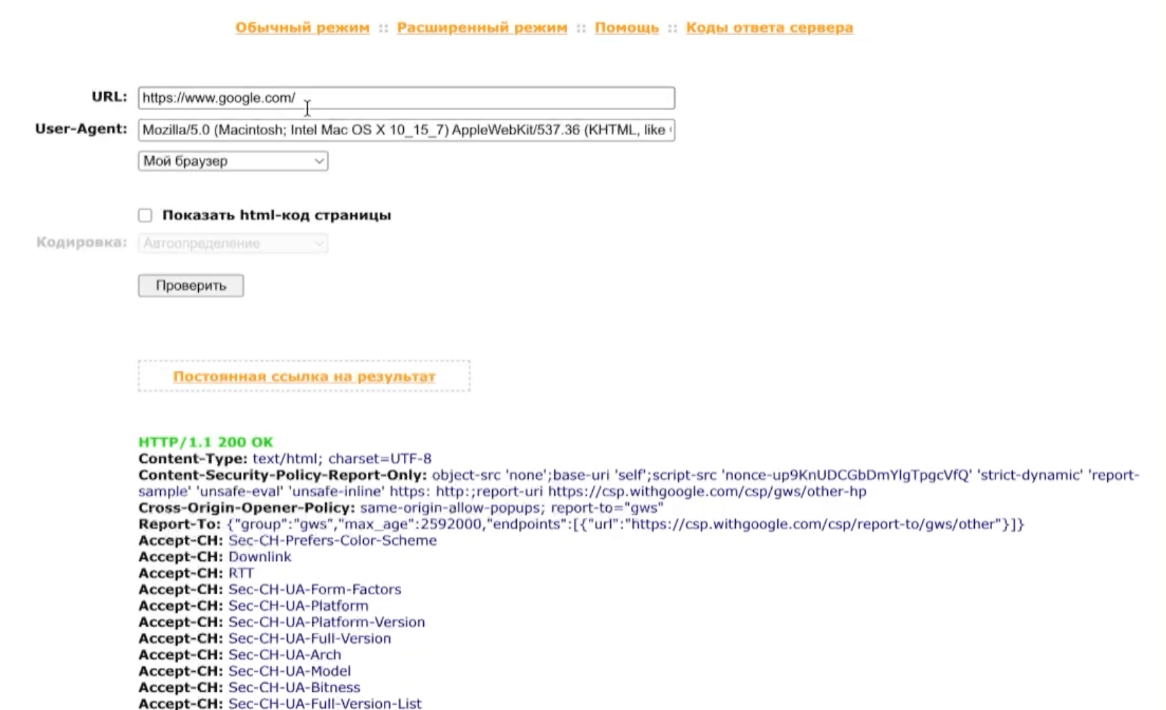 Вот примеры ответов: 200: для существующих страниц.