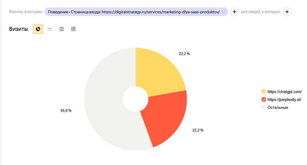 Яркий пример — страница о SaaS-маркетинге. По данным Wordstat частота запросов равна нулю, но именно её поднимают ChatGPT и Perplexity. Это наглядное доказательство того, что GEO начинается не с ключевых слов, а с понимания бизнеса, его продуктов и языка клиентов.