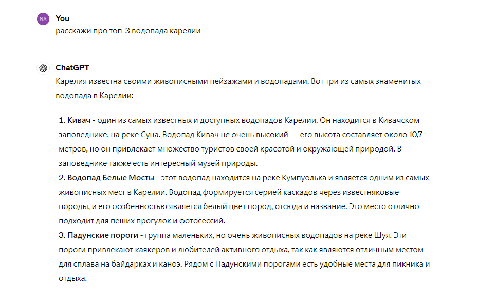 Все эти нюансы кажутся мелочью, но что если в каждом материале таких будет по 5-10 штук? И это уже не говоря о том, что GPT не рассказала о такой популярной достопримечательности, как водопады Ахинкоски возле Рускеалы.