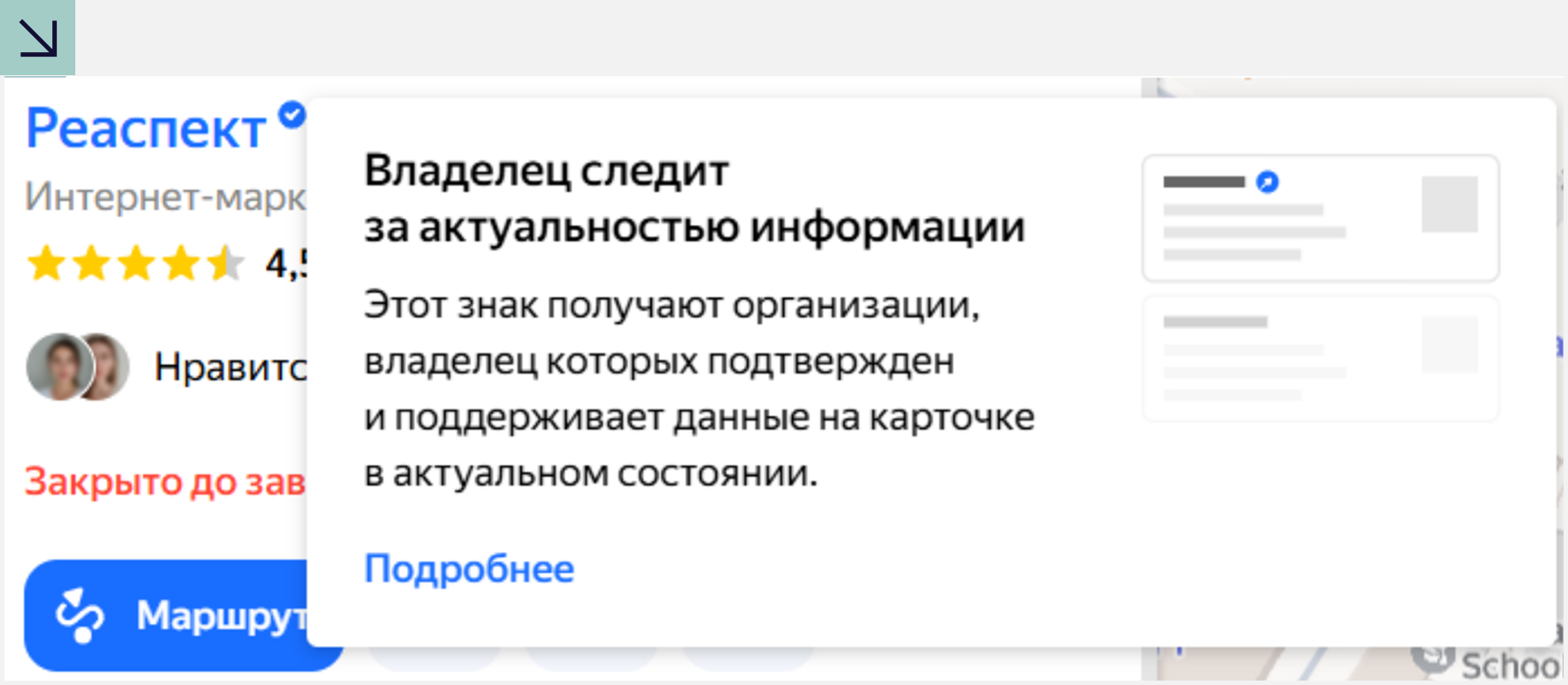 Статус владельца: Есть ли у карточки знак «Информация подтверждена владельцем» (синяя галочка в Яндексе)? Это базовый маркер доверия для алгоритмов.