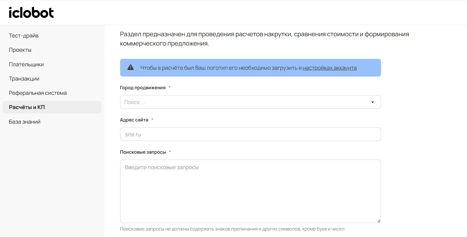 Количество и стоимость кликов для каждого запроса можно рассчитать через калькулятор на сайте, что показалось мне удобным.